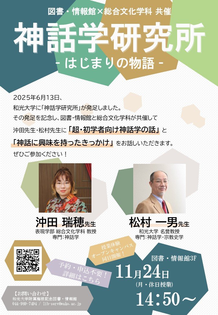(11/24) 総合文化学科共催「神話学研究所-はじまりの物語-」開催のお知らせ【予約不要】