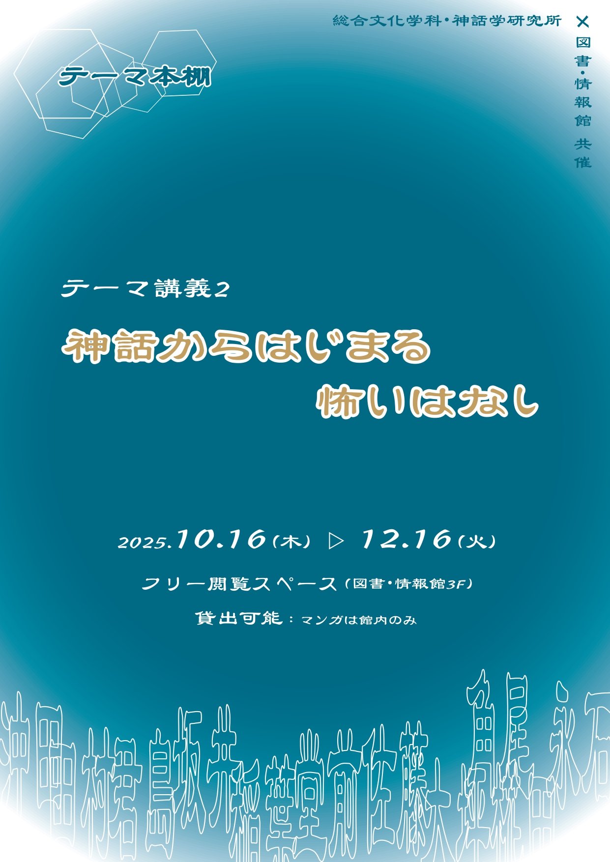 今回のテーマ本棚は、授業「神話からはじまる怖いはなし」 ( 木曜1限 ) とのコラボ企画です。
